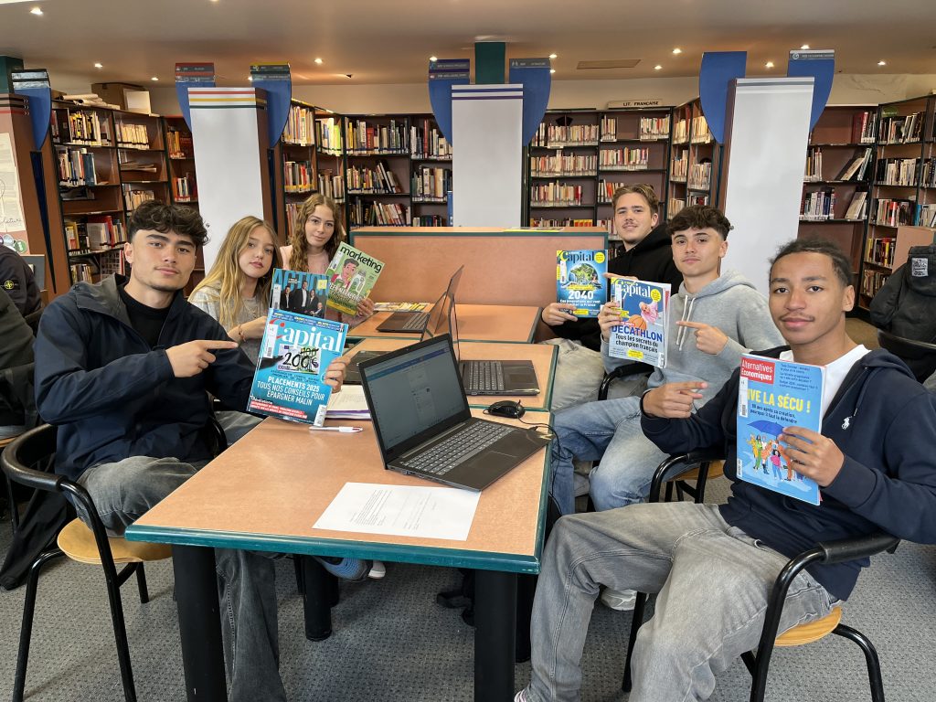 Les lycéens de terminale STMG1 ont commencé leur challenge lecture : un bingo à partir de la presse spécialisée (Capital, Alternatives économiques, Management, Marketing, Action co…). « IA », « article à la Une » « article illustré par un graphique » « RSE » « QVCT »