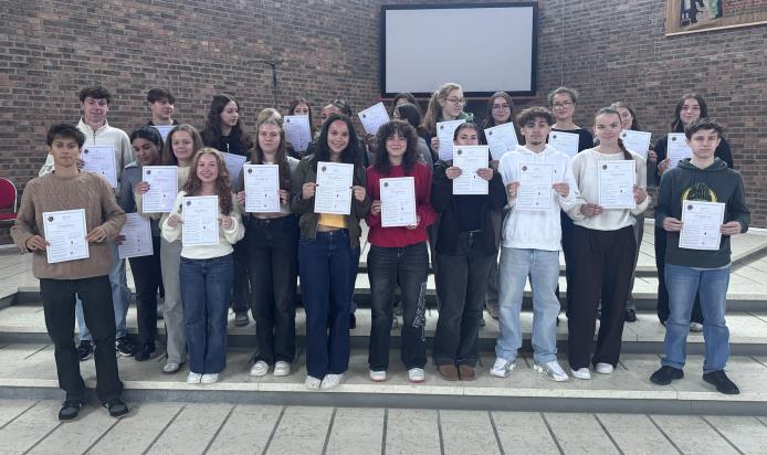 Mardi dernier, nous avons remis à 45 lycéens et lycéennes de terminale, leur diplôme attestant la préparation et le passage de la certification VOLTAIRE – un sésame que nos jeunes pourront valoriser sur PARCOURSUP. Une belle façon de progresser pour la plupart d’entre eux ; certains ont atteint des scores très honorables à la fois en orthographe mais aussi en rédactionnel. Félicitations à tous ces jeunes qui ont le goût de l’effort et de l’engagement et un grand merci à Sophie et Dana qui les accompagnent dans ce dispositif.