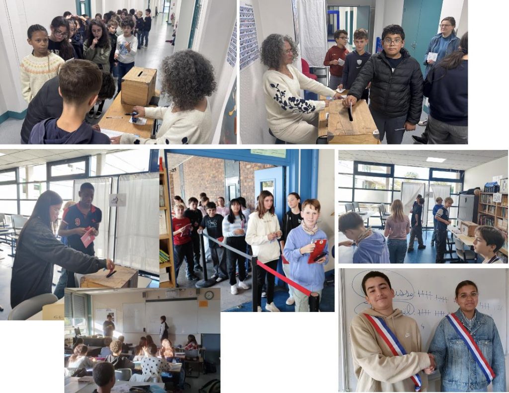 Au collège, les élèves ont voté selon le planning prévu, en salle d’étude, munis de leur carte scolaire. Leur participation a été validée par une signature sur la liste d’émargement et par l’apposition du cachet de confirmation du vote dans leur carnet de correspondance. Les absents ont également pu exercer leur droit de vote par procuration. Le dépouillement s’est déroulé en classe, sous la responsabilité des professeurs principaux, et les bulletins ont été comptabilisés avec rigueur. Enfin, les résultats ont été proclamés à l’issue du dépouillement.